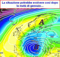 Tale afflusso freddo condizionerebbe il tempo almeno sino a sabato 21 gennaio. Naturalmente più l’aria fredda si muoverà verso ovest più vi sarà possibilità che si verifichi un’interazione con le correnti atlantiche, in grado di apportare nevicate in pianura anche copiose, questa volta soprattutto al nord, ma questa ipotesi è davvero figlia di un ragionamento statistico, poiché il modello ancora cincischia su questo punto.