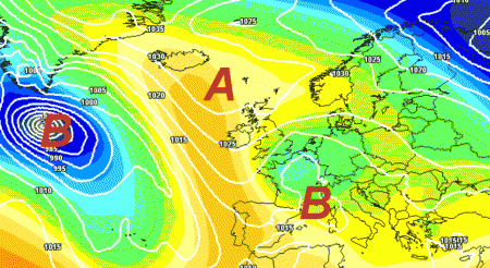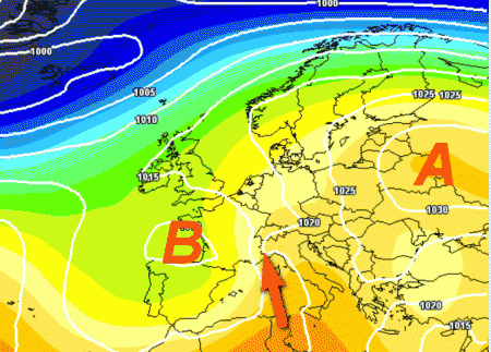 L’alta pressione porrà un massimo tra l’Islanda e la Scandinavia; più a sud vigerà un regime depressionario che potrebbe avere la sua roccaforte proprio sul Mediterraneo; qui si rinnoveranno diverse situazioni piovose, ma sempre in un contesto non particolarmente freddo.