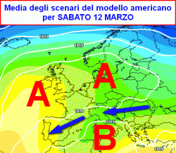 La prima mappa ci mostra la media di tutti gli scenari (compreso il run ufficiale), imbastita dal modello americano questo pomeriggio per la giornata di mercoledì 9 marzo.