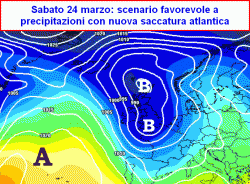 sabato 24-domenica 25 e lunedi 26 marzo: possibile nuova fase di maltempo su tutta la Penisola con piogge e rovesci, anche neve sulle Alpi e sul nord e centro Appennino oltre gli 800-1200m. Temperature in calo.