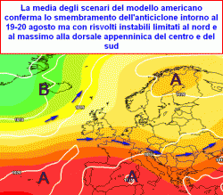 Questo potrebbe consentire l’inserimento di onde depressionarie atlantiche, secondo alcune emissioni già entro giovedì 18 o venerdì 19, secondo altre nel corso dell’ultima decade di agosto, ipotesi al momento più probabile, ma ancora non certa.