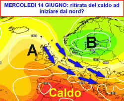 Da notare il ritiro dell’alta pressione verso sud e l’ingresso di correnti fresche nord atlantiche su gran parte del Bel Paese.