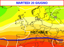 Un guasto più consistente, dettato da maggiori condizioni temporalesche, potrebbe manifestarsi al nord attorno al 20 di giugno, ma al momento si tratta solo di ipotesi (terza mappa).