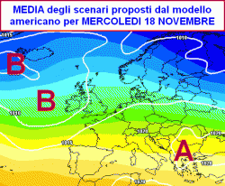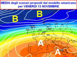 La prima cartina ci mostra la media degli scenari proposti dal modello americano per la giornata di venerdì 13 novembre.