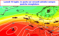 lunedì 10 luglio: qualche temporale possibile su Alpi, nord-est, Emilia-Romagna, dorsale appenninica del centro e del sud, per il resto bel tempo e caldo moderato.