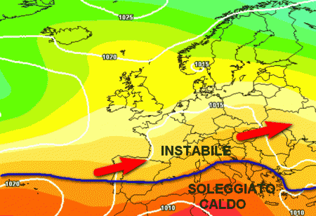 Al sud e su parte del centro un tempo stabile, soleggiato e caldo; al nord e sulla Toscana un tempo instabile con rovesci dettati dall’ingerenza di correnti umide di matrice atlantica, in un contesto termico generalmente più fresco.