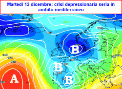 Martedì 12 dicembre: dapprima pause asciutte e un po’ di sole, poi possibile peggioramento su nord-ovest e regioni tirreniche centrali, Sardegna compresa con precipitazioni, che su Piemonte, Valle d’Aosta, Appennino Ligure ed ovest Lombardia saranno nevose sino a quote collinari. Tempo d’attesa sulle altre regioni.