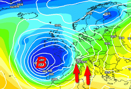 Appare probabile l'arrivo di una vasta saccatura ricolma di aria fredda che dall'Europa occidentale si trasferirà verso le nostre regioni.