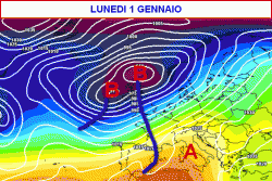 L’alta pressione dovrebbe indebolirsi quasi subito da una prima perturbazione che porterà ulteriori piogge al nord e al centro tra lunedi 1 e martedì 2 gennaio.