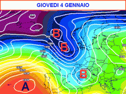 A seguire, le correnti atlantiche potrebbero penetrare sul Mediterraneo con maggiore decisione attorno al periodo dell’Epifania (la terza mappa si riferisce a giovedì 4 gennaio), determinando un peggioramento più organizzato accompagnato da un calo delle temperature.