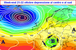La saccatura finirebbe per isolarsi nel cuore del Mediterraneo centrale, isolandosi dal flusso delle correnti perturbate atlantiche e generando sull’Italia il classico minimo chiuso o "goccia fredda", che manterrebbe attive condizioni di instabilità al centro e al sud nel corso del fine settimana 21-22 ottobre.