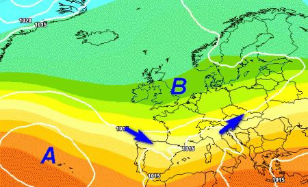 Quell’anomalia negativa sottende la presenza di una circolazione depressionaria che finisce per abbracciare anche parte del nostro Paese, segnatamente il nord e le regioni centrali, lasciando invece un po’ al riparo il meridione, dove infatti si prevede anche un’incidenza delle precipitazioni piuttosto bassa rispetto al resto del Paese.