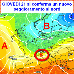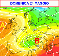 Giovedì 21 maggio verrà interessato essenzialmente il nord, mentre tra sabato 23 e domenica 24 sarà la volta del centro-sud (seconda cartina a lato).