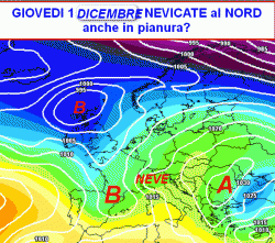Giovedì 1 dicembre…primo giorno dell’inverno meteorologico ed è subito NEVE? Quasi impossibile da credere, ma il run ufficiale del modello americano mostra, per la giornata in parola, una situazione assai allettante per le regioni settentrionali…e non solo.
