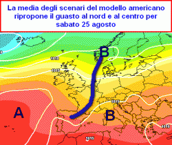 Il modello americano, nel suo run di mezzogiorno, rilancia la possibilità di un guasto del tempo al centro e al nord a partire da sabato 25 agosto.