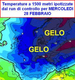 Per avere idea delle potenzialità che si avranno in campo termico nel periodo in parola, osservate la terza mappa valida per mercoledi 28 febbraio.