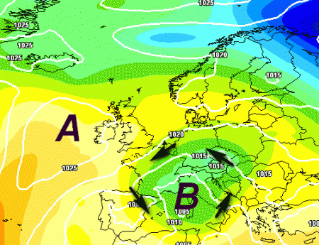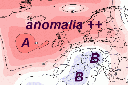 L’accumulo di freddo al Polo più rilevante della norma, sta provocando ora continui afflussi di "smaltimento" verso l’est europeo, che certamente mantengono fredda la primavera su quelle zone, ma impediscono anche, causa la formazione di un anticiclone di blocco, l’inserimento delle correnti occidentali con i loro serpeggiamenti, in grado di assicurarci quel sano maltempo di primavera. Ecco l’anomalia barica prevista sul Continente per giovedì 23 aprile:
