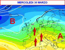 Successivamente, aumenterebbe l’ingerenza di una vasta depressione atlantica, con lo spostamento verso levante della zona anticiclonica suddetta.