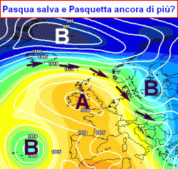 Sabato 4 ultimi rovesci in Adriatico, poi spazio al bel tempo per Pasqua e Pasquetta. Successivamente, l'alta pressione potrebbe migrare nuovamente verso nord con accentuazione dell'instabilità sul nostro Paese.