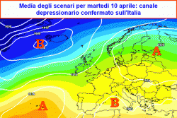 Sempre più depressionaria l'evoluzione prevista da sabato 7 aprile.