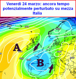 Se si ritiene abbastanza attendibile al 55-60% l’evoluzione perturbata da mercoledì 22 a venerdì 24 marzo, non si potrà allora scartare la possibilità che poi la trottola depressionaria vada traslando lentamente, come un pendolo, verso il Mediterraneo centrale e dunque verso l’Italia.