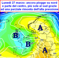 domenica 26 marzo e lunedi 27 marzo: instabile con alcuni rovesci sparsi al nord e sulle centrali tirreniche, parzialmente soleggiato altrove e asciutto.