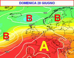 L’alta pressione delle Azzorre, coadiuvata da un promontorio africano alle quote superiori, si ergerà a baluardo delle perturbazioni e dell’aria fresca sul bacino del Mediterraneo. La cartina valida per domenica 28 giugno ci mostra un solido anticiclone che potrebbe ampiamente riscattare le sorti dell’estate sulla nostra Penisola. Se questa linea di tendenza divenisse realtà, sarebbero davvero pochi i disturbi al monopolio del sole e del caldo sul Bel Paese.