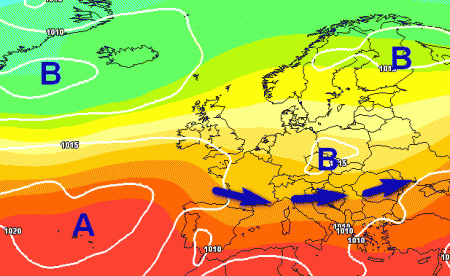 Flusso di correnti fresche ed instabili da ovest con rischio di temporali sparsi specie al nord e al centro, il tutto accompagnato da temperature non elevate (tranne forse qualche punta all’estremo sud).