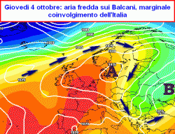 la prima decade di ottobre vede l’alta pressione resistere ad ovest e concedere qualche scorribanda all’aria fredda sui Balcani con modesti riflessi termici anche sul nostro Paese, ma niente di più, mentre su alcune nazioni dell’est europeo potrebbe anche fioccare a quote basse, evento tutt’altro che raro peraltro ad inizio ottobre.
