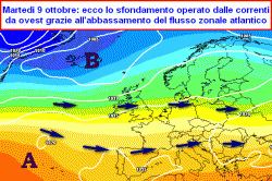 lunedì 8 e martedì 9 ottobre: passaggio a tempo variabile per venti da ovest, possibile peggioramento dal pomeriggio di martedì con piogge su nord-ovest e Toscana.