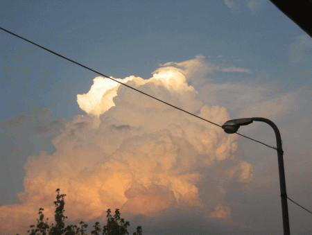 Nella foto appare in tutta la sua maestosità un cumulonembo, nube temporalesca per antonomasia che testimonia il volto instabile dell’estate italica.