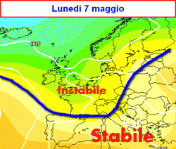 Tempo instabile e anche abbastanza fresco specie sotto gli eventuali rovesci o temporali; l’alta pressione delle Azzorre proverà comunque ad avanzare verso l’Europa, ma con scarsi risultati.