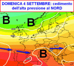 La seconda mappa ci mostra la linea di tendenza del tempo per la giornata di domenica 4 settembre.