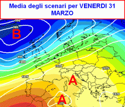 Presa per buona questa tendenza (ovviamente tutta da verificare), si arriverà alla fine del mese con il dominio delle basse pressioni molto a nord (alle latitudini delle isole Britanniche) e l’alta pressione distesa nel Mediterraneo (prima mappa).