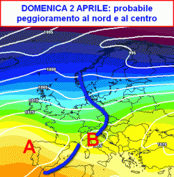Volgendo lo sguardo a prua e arrivando a scrutare i primi giorni del nuovo mese, le elaborazioni odierne promettono un peggioramento del tempo al nord e su parte del centro (seconda mappa).