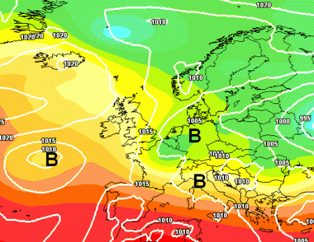 Notate l’alta pressione delle Azzorre che si posizionerà "di quinta" sul vicino Atlantico, quasi intimorita da questo stato di cose.