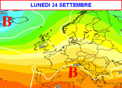 Tre giorni dopo, ovvero nella giornata di sabato 22 settembre, l’azione di erosione da parte delle correnti atlantiche ai danni dell’alta pressione si farà progressivamente più marcata.