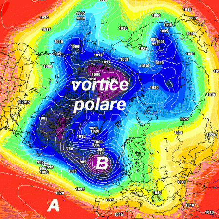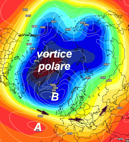 Vortice polare in approfondimento e compattamento: variabilità sull'Italia.