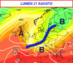 Lunedi 27 agosto solo le estreme regioni meridionali resterebbero immuni dal cambiamento del tempo che avverrà sul resto d’Italia a suon di temporali e aria più fresca.