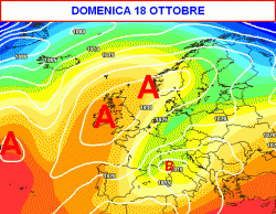 La prima cartina inquadra la situazione contemplata dal modello americano per la giornata di domenica 18 ottobre.