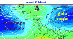 venerdì 23 febbraio: tempo simile ma freddo più limitato al nord.