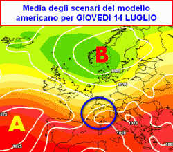 Un modo per controllare l’affidabilità di questa tendenza è l’analisi della media degli scenari del modello americano, raffigurata nella seconda mappa a lato.