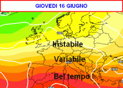La seconda mappa ci mostra la situazione attesa in Europa e in Italia per giovedì 16 giugno.