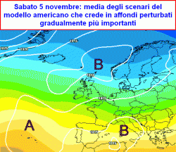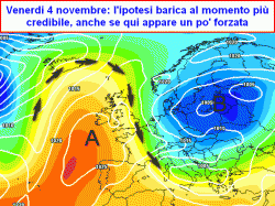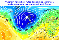 da mercoledì 3 novembre a sabato 5 novembre: possibile affondo freddo da nord-est con maltempo su medio Adriatico e meridione e freddo altrove, oppure affondo freddo su ovest Continente e risposta umida e piovosa ma non fredda sull’Italia. Da verificare!
