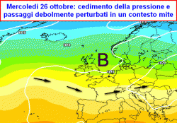 Da sabato 22 a lunedi 24 ottobre: possibile almeno un nuovo passaggio debolmente perturbato tra nord e centro con qualche pioggia sparsa, modesti i riflessi al sud, temperature in lieve diminuzione.