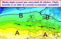 Il modello indica infatti tra il 23 ed il 26 ottobre un abbassamento del flusso zonale atlantico con la penetrazione di correnti da ovest e rischio di qualche fase piovosa tra nord e centro, in un contesto termico mite.