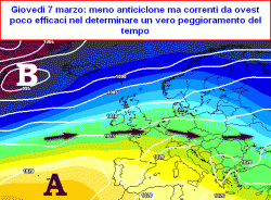 giovedi 7 marzo: passaggi nuvolosi lungo le Alpi e le Venezie, poi sul medio Adriatico, tempo asciutto e nessun vero peggioramento, più sole altrove. Temperature ancora relativamente miti.