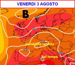 RIASSUMENDO: Martedi 31 luglio e mercoledi 1 agosto qualche temporale al centro e al nord, bello al meridione, caldo nella norma per il periodo. Da giovedì 2 a sabato 4 agosto bello al centro e al sud con temperature in aumento, un po’ instabile al nord con qualche temporale specie nel pomeriggio e sui rilievi. Domenica 5 e lunedi 6 agosto bel tempo ovunque, ma con l’insidia di temporali specie nelle zone interne durante il pomeriggio.