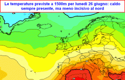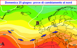 sabato 24 giugno e domenica 25 giugno: possibile arrivo di qualche temporale tra sabato sera e domenica al nord, specie su Alpi e fascia pedemontana con lieve o moderato calo termico, ancora prevalenza di sole e caldo altrove.