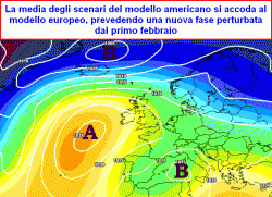 Le controanalisi del modello americano relative alla media degli scenari di 20 corse perturbatrici smentiscono l’ipotesi ufficiale del modello, che continua ad insistere nel mostrare una severa ondata di freddo raggiungere i Balcani e l’Italia proprio nei primi giorni di febbraio e determinare nevicate in pianura e sulle coste adriatiche e sul